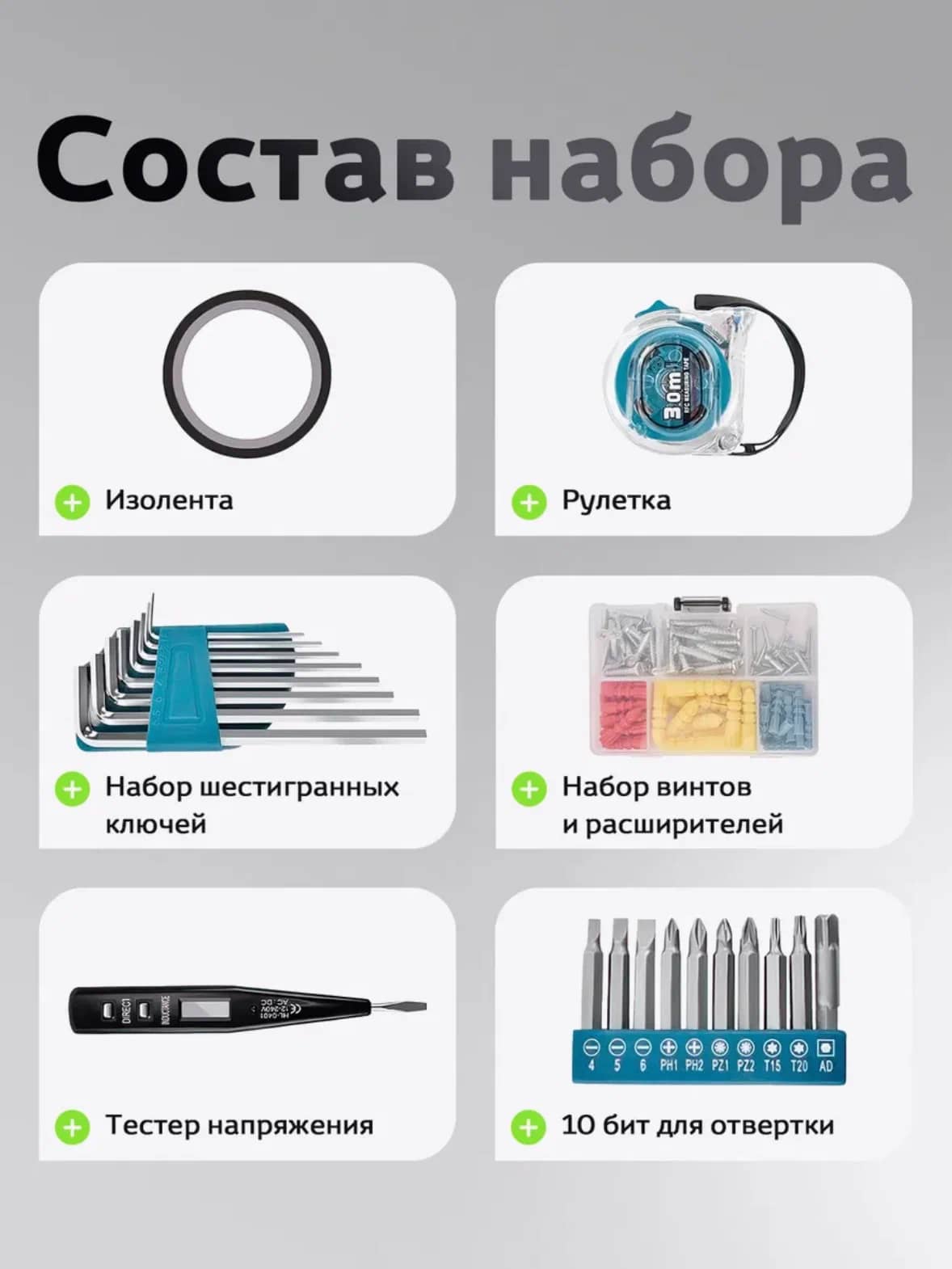 Прочный и стильный кейс не только надежно хранит все компоненты, но и делает набор удобным для транспортировки. Берите его с собой на дачу, в гараж или в поездку – ваш надежный помощник всегда будет под рукой! Подарите универсальный набор инструментов – подарите уверенность в своих силах и возможность воплотить любые идеи в жизнь!